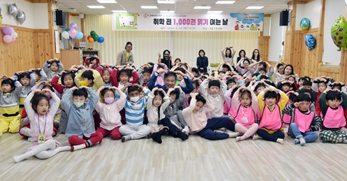 이날 정성주 김제시장과 해당 유아 교육기관 원장, 선생님 그리고 주인공인 5~7세 유아 150명이 참석한 가운데‘취학 전 1,000권 읽기 여는 날’ 행사가 펼쳐졌다.