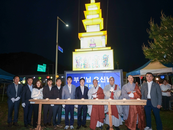 [뉴스서울] 성주군은 지난 29일, 성주읍 새마을공원에서 무명을 밝히는 봉축탑 점등식을 봉행했다.