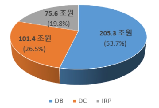제도유형별 적립금 규모는 확정급여형 205.3조원, 확정기여형·기업형IRP 101.4조원, 개인형IRP 75.6조원 순이었다.