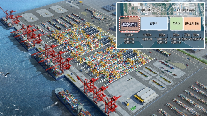 이번 야드크레인 제작을 시작으로 자동화 장치장, 운영 건물 등 기반시설과 핵심 장비 및 시스템(안벽크레인, 무인이송장비, 터미널운영시스템)을순차적으로 구축할 예정이다. 컨테이너 부두는 2027년에 1차 개장(4천TEU 2선석), 2029년에 2차 개장(4천TEU 1선석, 2천TEU 1선석) 할 예정이다.