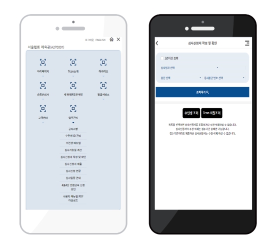앞으로는 발급서비스와 더불어 모바일 웹에서도 △수련생 ID 관리 △심사 가능일 계산 △심사신청서 작성 및 확인 △심사신청서 제출 △심사신청 현황 △심사일정 안내 △ 4품‧4단 전환교육 신청 승인 등이 가능하다.
