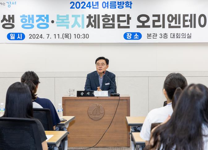 [뉴스서울] 진교훈 강서구청장이 11일 2024년 여름방학 대학생 행정·복지체험단을 격려하고 앞으로의 활동을 응원했다.
