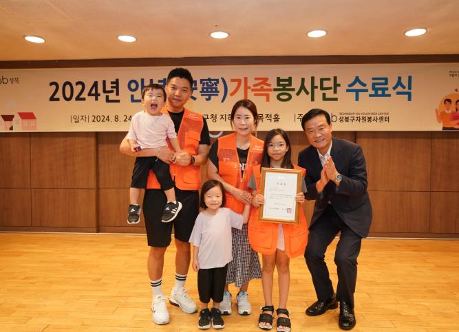 [뉴스서울] 서울 성북구가 지난 24일 성북구청 다목적홀에서"2024년 안녕가족봉사단 수료식"을 개최했다. 이번 수료식에는 총 6회기 중 3회기 이상 참여한 30가족이 수료했다.