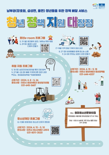 도시의 균형발전 및 청년 정책 체감도 향상을 위해 마련된 청정지대(청년 정책 지원 대장정)는 5월 18일(토)에서 12월 31일(화)까지 주제별(▲청년e-room 프로그램 ▲취업 지원 프로그램 ▲청소년재단 프로그램)로 운영되며, 남부권에 거주 또는 활동하는 19세 이상 39세 이하 청년이면 누구나 QR코드를 통해 신청할 수 있다.