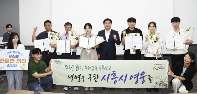 [뉴스서울] 시흥시가 26일 시청 글로벌센터에서 집중호우에 따른 위기 상황에서 적극적인 인명구조 활동을 펼친 시흥시 공무원 6명에게 유공 표창을 수여했다.