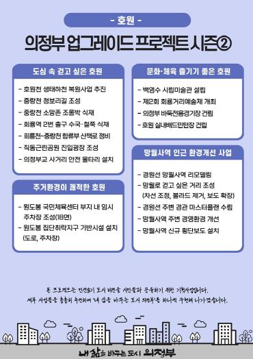 [뉴스서울] 의정부시는 시민들의 삶의 환경을 한 단계 개선하기 위한 ‘의정부 업그레이드 프로젝트’의 시즌2 호원편을 11일 발표했다.