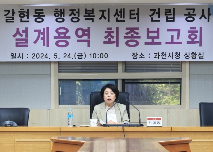 [뉴스서울] 과천시는 24일 시청 상황실에서 신계용 과천시장과 관계 공무원 등이 참석한 가운데, ‘갈현동 행정복지센터 건립 공사 설계용역 최종보고회’를 개최했다.