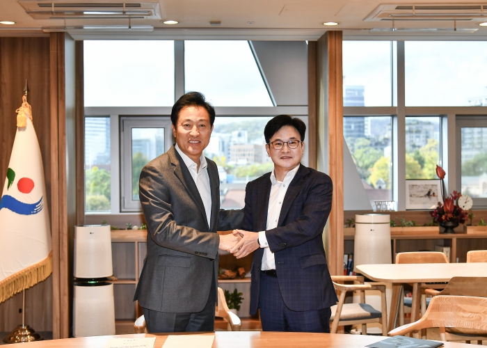 | ▲ 지난해 11월 6일 김병수 김포시장이 오세훈 서울시장과 공식 만남을 갖고 공동연구반을 구성하기로 합의했다. |