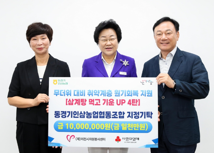 한편, 동경기인삼농협은 2011년 이천시자원봉사센터와 MOU체결을 통해 지역사회와 더불어 사는 사회를 체계적으로 구축하고 전문성 있는 사회공헌을 함께 추진하기로 협약을 맺고, 폭염으로 어려운 시기를 겪고 있는 이웃들에게 따뜻한 마음을 전하고자 ‘기운UP’ 슬로건을 갖고 삼계탕 나누기 사회공헌을 4년 연속 후원하고 있다.