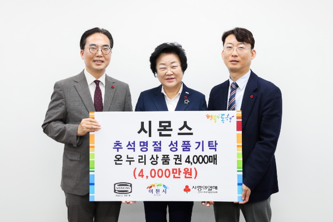 [뉴스서울] 이천시는 지난 5일 (주)시몬스가 다가오는 추석을 맞이하여 온누리상품권 4,000매를 기탁했다고 밝혔다.