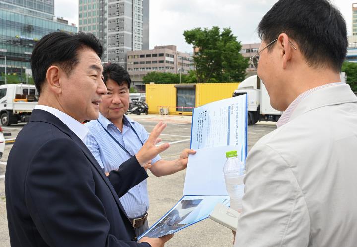 | ▲ 김동근 시장이 의정부역세권 개발을 위해 7월 10일 서울 창동 도시개발사업 대상지를 방문해 관계자로부터 개발사업에 대한 설명을 듣고 있다. |