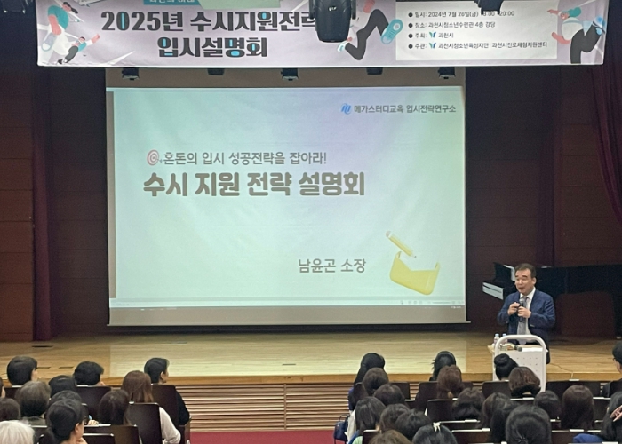 과천시 진로체험지원센터 주관으로 진행된 이번 설명회는 메가스터디 교육 입시전략연구소 남윤곤 소장의 강의로 진행됐다.