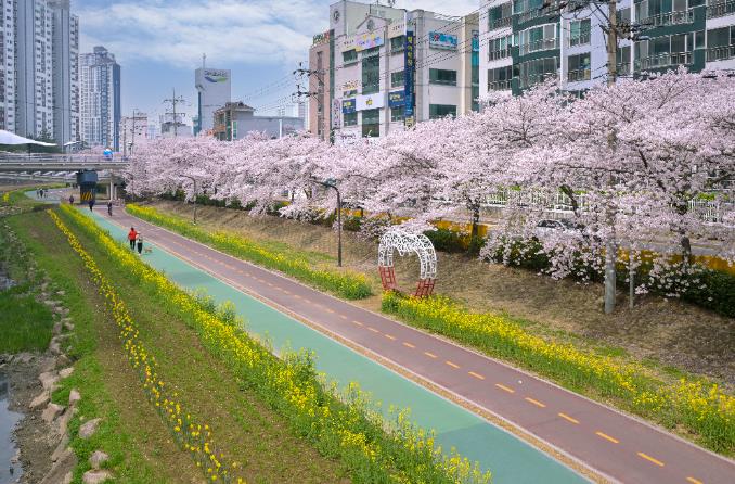 남구의 도심 속 생활 쉼터인 여천천이 유채꽃과 수선화로 물들며, 노란 빛을 내는 봄의 정원으로 재탄생 해 주민들에게 많은 볼거리를 제공하고 있다.