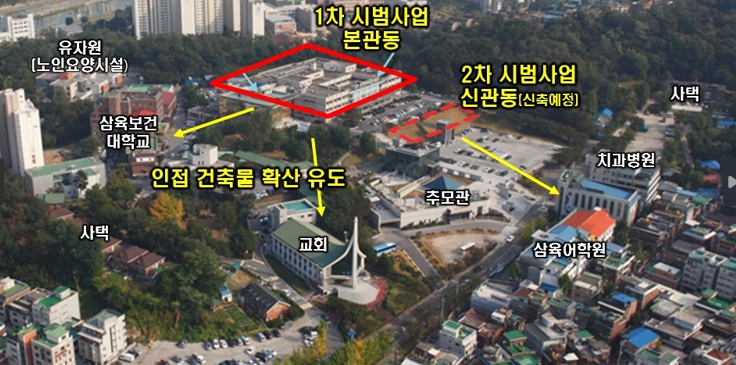 구는 지역 내 에너지다소비 건물 중 구의 탄소중립 정책 흐름에 맞춰 이번 사업에 적극 참여할 의지를 가진 삼육병원 일대를 첫 시범사업 지역으로 선정했다. 현재 병원으로 이용되고 있는 본관동은 에너지 소비가 많은 노후 건축물을 녹색건축물로 전환시켜 에너지 효율과 성능을 끌어올리는‘그린리모델링’을, 신축 예정인 신관동에서는 제로에너지 인증을 추진한다. 이후 인접한 삼육보건대와 유자원(노인전문요양시설) 등으로 확대해 나갈 예정이다.