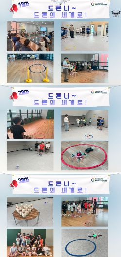 1일 차에는 드론 조종, 비행 원리, 안전 규정 등 다양한 내용이 포함된 이론 교육과 기본적인 드론 조작 방법을 배우는 활동이, 2일 차에는 ‘스카이킥’, ‘둥둥 드론’ 등 다양한 드론 기체를 활용한 드론 기술과 창의적 문제 해결 능력을 기르기 위한 장애물 통과 활동이 진행됐다. 마지막 3일 차에는 그동안 배운 드론 조종 능력을 ‘드론 볼링’, ‘드론 타임어택’ 등 여러 게임을 통해 맘껏 뽐내는 활동으로 진행됐다.