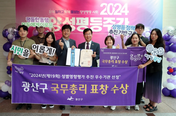 [뉴스서울] 광주 광산구는 전국 자치구 유일하게 여성가족부가 주관한 ‘2024년 성별영향평가’에서 우수기관에 선정돼 국무총리 표창을 받았다고 밝혔다.