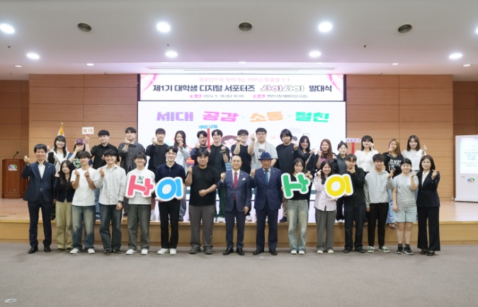 [뉴스서울] 천안시가 지난 18일 경로당으로 찾아가 어르신 맞춤형 1대1 디지털 기기 사용법을 교육하는 대학생 디지털 서포터즈 ‘사이사이’를 발대했다.