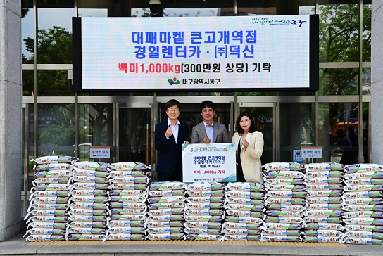 [뉴스서울] 대패마켙 큰고개역점·경일렌터카·㈜덕신(대표 박덕규)은 지난 29일, 어려움을 겪고 있는 저소득가정에 전달해달라며 10kg 백미 100포(300만원 상당)를 동구청에 기탁했다.