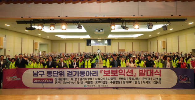 [뉴스서울] 부산 남구는 지난 10일 남구청 1층 대강당에서 걷기동아리 회원 300여명과 함께 남구 동단위 걷기동아리 ‘보보익선(걸을 때 마다 건강도 챙기고, 같이 걷는 사람끼리 유대감도 좋아진다)’발대식을 성황리에 마쳤다.