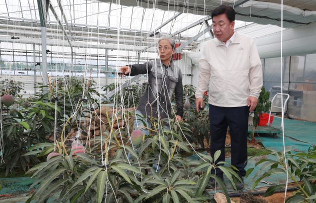 ▲ 이범석 청주시장, 청주 제1호 애플망고 재배 농가 방문 |