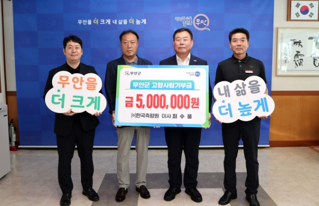 [뉴스서울] 전남 무안군은 ㈜한국측량원 최수풍 이사가 작년에 이어 올해도 무안군에 고향사랑기부금 500만원을 기탁하고 지역 발전에 따뜻한 응원을 보냈다고 24일 밝혔다.
