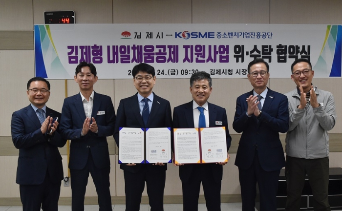 [뉴스서울] 김제시는 24일 시청에서 중소벤처기업진흥공단과 ‘김제형 내일채움공제 지원사업’에 대한 업무협약을 체결했다.고 밝혔다