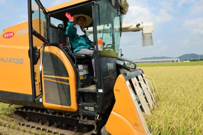 이날 수확한 조생종 벼 ‘진광’은 지난 4월28일 모내기를 한 후 약121일 만에 수확했으며, 정미를 거쳐 추석 전 소비자들에게 햅쌀로 판매할 예정이다.