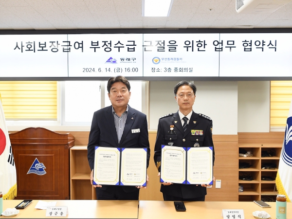 [뉴스서울] 부산 동래구는 지난 14일 사회보장급여 부정수급 근절을 위해 동래경찰서와 업무 협약을 체결했다고 밝혔다.