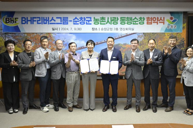 [뉴스서울] 순창군과 BHF리버스그룹이 도농교류 활성화와 치유·힐링 기반 상생협력을 위한‘농촌사랑 동행순창’협약을 9일 체결했다.