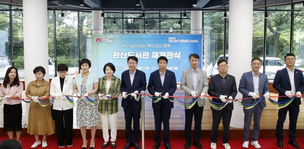 전주시는 29일 완산도서관에서 우범기 전주시장, 남관우 전주시의회 의장, 최용철 행정위원장, 진형석 전북도의회 교육위원장, 지역주민 등 100여 명이 참석한 가운데 ‘완산도서관 재개관식’을 가졌다.