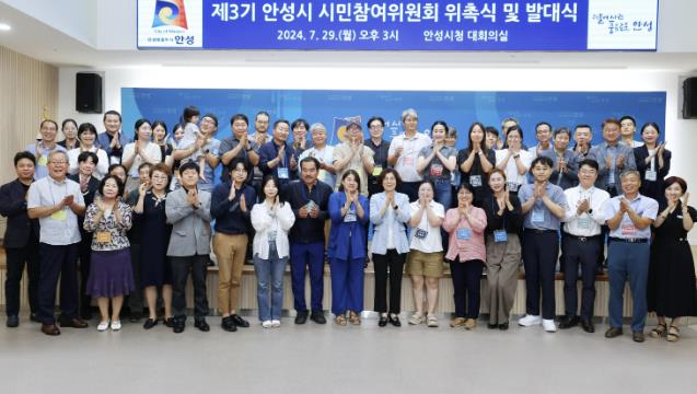 [뉴스서울] 안성시가 제3기 시민참여위원회 구성을 완료하고 발대식을 개최했다. 참여 위원들은 위원회를 통해 아이디어를 제안하고, 시 주요 정책 입안과정부터 집행, 사후평가 과정까지 참여할 수 있다.