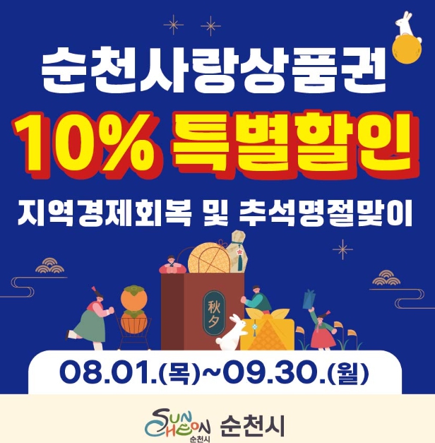 [뉴스서울] 순천시는 오는 8월 1일부터 9월 30일까지 순천사랑상품권 10% 특별할인판매를 실시한다고 밝혔다.