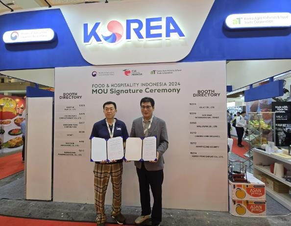 이날 협약은 한국농수산식품유통공사(aT, 자카르타 지사장 이승훈)가 주관하는 한국통합관에서 이뤄졌다.