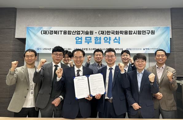 [뉴스서울] (재)경북IT융합산업기술원과 한국화학융합시험연구원은 2일 글로벌코스메틱 비즈니스센터에서 화장품 기업의 성장을 지원하기 위한 업무협약을 체결했다.