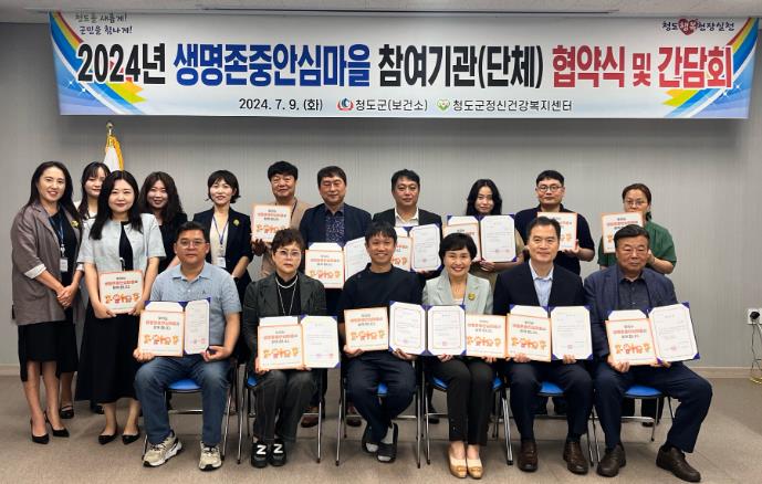 [뉴스서울] 청도군은 9일 청도군보건소에서 생명존중안심마을 조성을 위해 25개 관련 기관과 ‘2024년 청도군 생명존중안심마을 협약식 및 간담회’를 개최하였다.