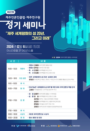 [뉴스서울] 제주언론인클럽과 제주연구원은 오는 6일 오후 3시 아스타호텔 아이리스홀에서 제22회 정기 세미나를 공동 개최한다.