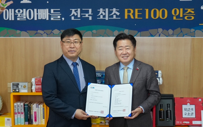김봉현 대표는 “지구를 사랑하는 마음과 가족의 먹거리는 아빠들이 책임진다는 일념으로 기업활동을 해왔다”며 “RE100에서 멈추지 않고 저탄소 계란 생산과 태양광 시설 설치로 제주의 에너지 대전환 정책에 동참하겠다”고 밝혔다.