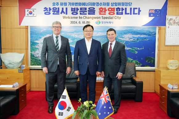 호주 하원 기후변화에너지환경수자원 상임위원회 위원장, 부위원장, 주한호주대사관 경제참사관 등 총 6명으로 구성된 방문단은 이날 홍남표 창원특례시장을 만나 에너지 및 친환경 산업 분야 교류 협력 의사를 전달했다.