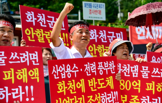 최군수와 류의장은 “반도체 산업발전은 누구나 바라지만, 댐 소재지 주민 의견 수렴도 없이, 화천댐으로 인한 상처가 그대로 방치되는 현 상황에서 일방적으로 용수 사용을 결정한 것에 대해 강력히 명확히 반대한다”고 강조했다.
