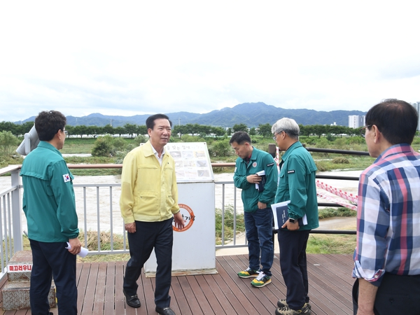 구인모 군수는 이날 위천면 남산리 농경지 침수지역을 시작으로 위천면 그라운드 골프장, 위천면 사마솔숲 침수 현장, 거창읍 김용마을 등 직접 읍·면 피해 현장을 둘러보며 피해 상황을 파악하고, 주민들의 애로사항을 청취하는 등 신속한 복구로 피해를 최소화할 것을 지시했다.