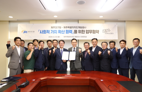 [뉴스서울] 제주개발공사와 제주연구원은 ‘사회적 가치 확산 협력’을 위한 업무협약을 지난 12일 체결했다고 밝혔다.