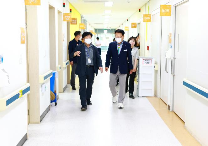 지역 공공의료기관인 울진군의료원을 방문하여 1층 외래, 3병동 및 5병동을 살펴보며 환자 및 보호자들의 안부를 묻고 불편사항은 없는지 의견을 청취하는 현장 소통행정을 펼쳤다.