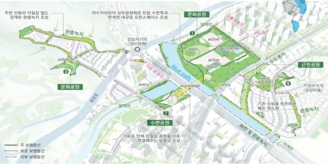 또한 지구 주변에 위치한 우면산, 청계산, 관악산과 서울대공원 등을 연결하는 녹지축 네트워크도 조성해 탁 트인 도시경관을 제공할 계획이다.
