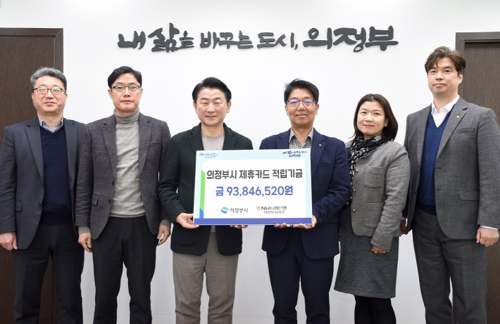 이날 전달된 적립기금은 9천384만 원으로 의정부시와 NH농협은행 의정부시지부가 맺은 제휴카드 협약을 통해, 지난 한 해 동안 의정부가 사용한 법인카드, 보조금 카드의 이용실적에 따라 0.5%~1%의 비율로 적립된 금액이다.