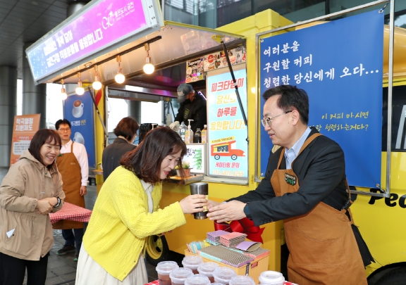 ▲ 유성훈 금천구청장 ‘청렴 커피차’ 1일 바리스타로 변신 |