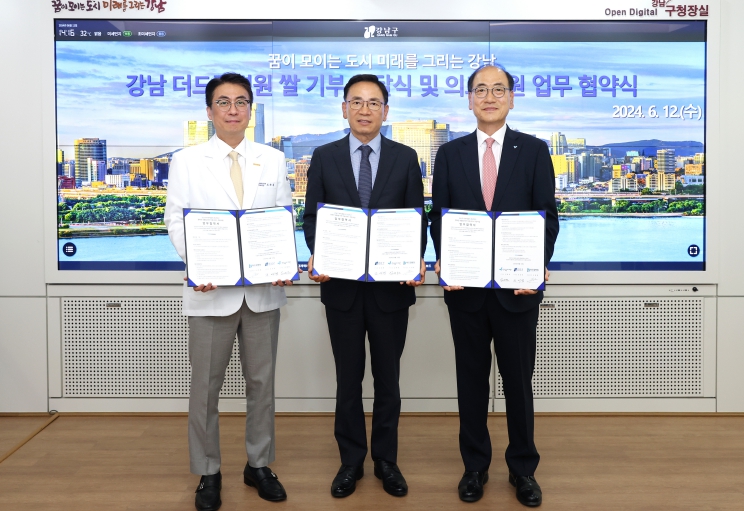 협약식에는 조성명 강남구청장, 더드림병원 도관홍 대표원장, 강남복지재단 심계원 이사장이 참석했다. 이날 강남더드림병원은 4,500kg 상당의 쌀을 소외계층을 위해 기부했다.