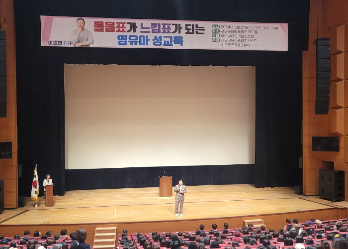 이날 강연은 ‘푸른아우성’의 2대 대표이며 금쪽같은 내 새끼 등 다수 방송에서 활약 중인 이충민대표가 ‘물음표가 느낌표가 되는 영유아성교육’이라는 주제로 본인의 경험담을 포함한 발달 과정 속 자연스러운 영유아의 성에 대하여 교육했다.