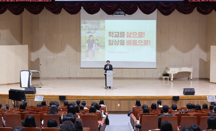 [뉴스서울] 도성훈 인천광역시교육감은 13일 2025년 초등 신규임용(예정) 교사 240명을 대상으로‘학교를 삶으로, 일상이 배움이 되는 교육’을 주제로 강연했다.