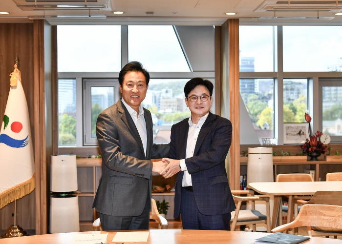 ▲ 지난해 11월 6일 김병수 김포시장이 오세훈 서울시장과 공식 만남을 갖고 공동연구반을 구성하기로 합의했다. |
