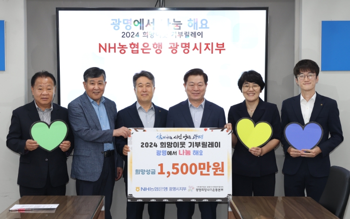 이번 기부릴레이 참여로 NH농협은행 광명시지부는 희망성금 1천500만 원을, 대명철물건축자재는 희망성금 200만 원을, 중앙대학교광명병원 노동조합은 300만 원 상당의 오일세트 100개를 각각 전달했다.